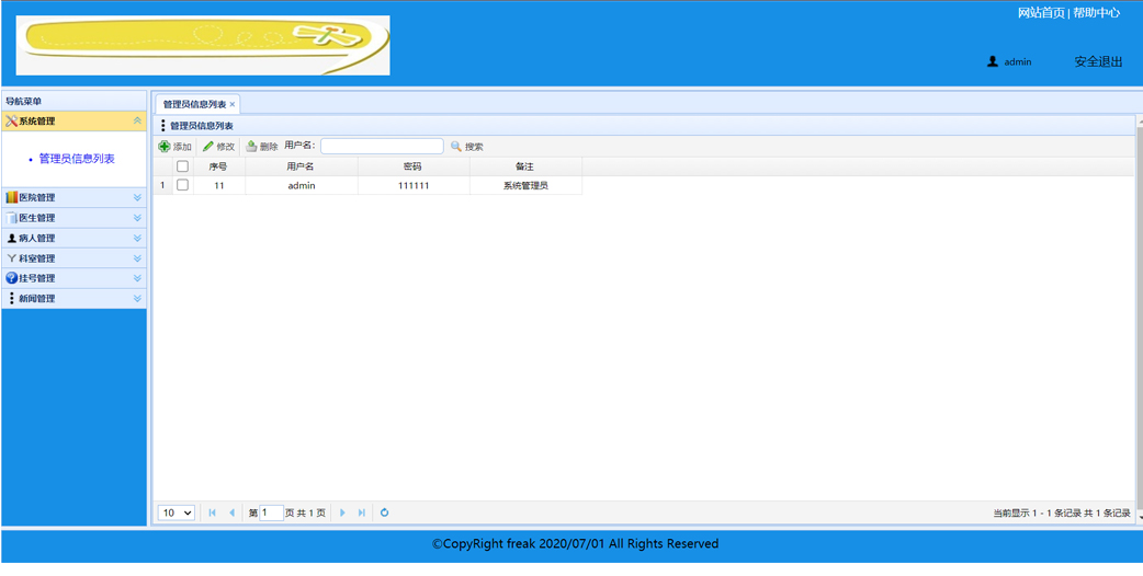 該系統(tǒng)主要對(duì)醫(yī)院中一些常見的信息進(jìn)行了管理,主要包含系統(tǒng)管理,醫(yī)院管理,醫(yī)生管理,科室管理等功能。后端使用了spring,spring mvc,mybatis框架組合,前端使用了曾經(jīng)風(fēng)靡一時(shí)的easyui。對(duì)于學(xué)完easyui的同學(xué)來說,該畢業(yè)設(shè)計(jì)是一個(gè)非常適合練手的項(xiàng)目。