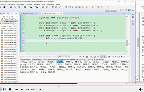 java | Pat老師 | "通過(guò)集合來(lái)實(shí)現(xiàn)洗牌和發(fā)牌的功能, 讓初學(xué)者加深對(duì)于集合知識(shí)的理解和使用" | ArrayList,HashMap,TreeSet的使用 |