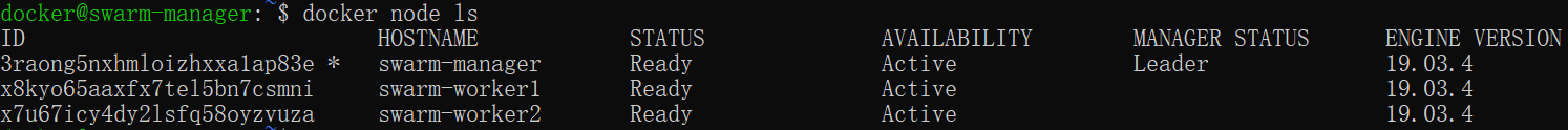 docker@swarm-manager:~$ docker node ls
