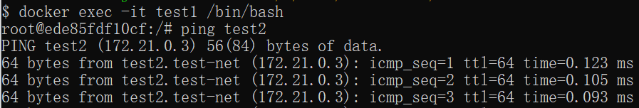 $ docker run -itd --name test2 --network test-net ubuntu /bin/bash