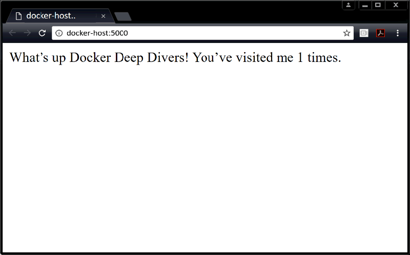 應(yīng)用部署成功后,讀者可以用 Docker 主機(jī)的瀏覽器連接 5000 端口來(lái)查看應(yīng)用的運(yùn)行效果,如下圖所示。