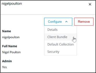 ⒊ 在新用戶選中狀態(tài)下,單擊 Configure 下拉框,然后選擇 Client Bundle,如下圖所示。