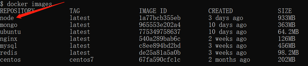 在上圖中可以看到我們已經(jīng)安裝了最新版本(latest)的 node 鏡像。