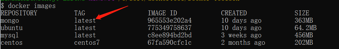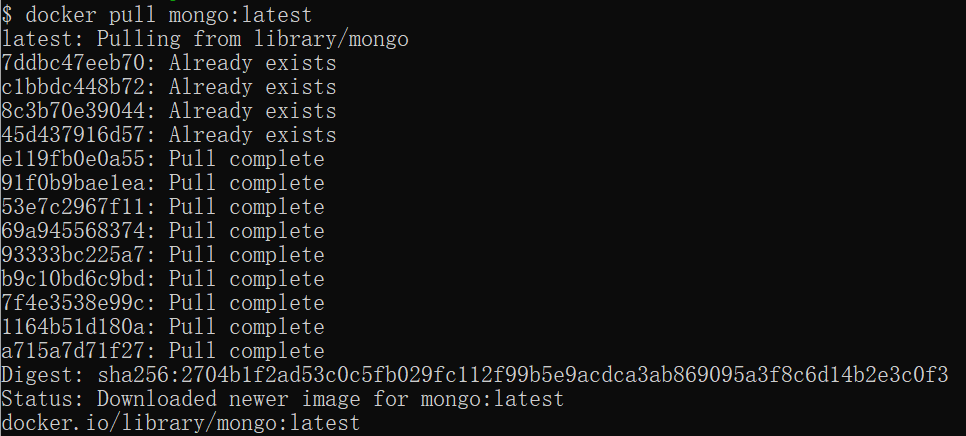 在上圖中可以看到我們已經(jīng)安裝了最新版本(latest)的 mongo 鏡像。