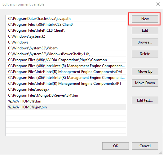 由于 win10 的不同,當(dāng)選中 Path 變量的時候,系統(tǒng)會很方便的把所有不同路徑都分開了,不會像 win7 或者 win8 那樣連在一起。