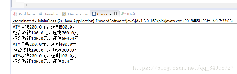 System.out.println("柜臺(tái)取錢" + money + "元,還剩" + Bank.money + "元!");