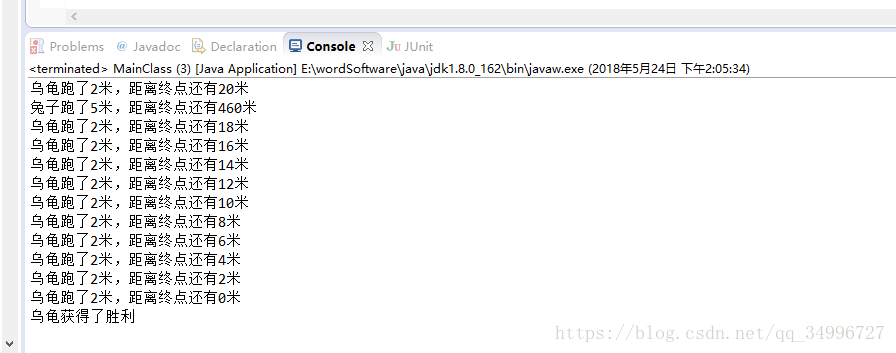 System.out.println("兔子跑了" + dis + "米,距離終點(diǎn)還有" + length + "米");