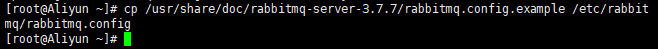 [root@Aliyun ~]# cp /usr/share/doc/rabbitmq-server-3.7.7/rabbitmq.config.example /etc/rabbitmq/rabbitmq.config