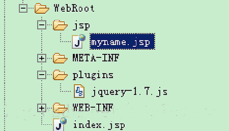 1 .在WetRoot下直接建立jsp文件,將jquery-1.7.js放入一個新建的文件夾下:如圖:
