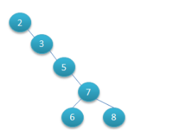 二叉查找樹(shù)可以任意地構(gòu)造,同樣是2,3,5,6,7,8這六個(gè)數(shù)字,也可以按照下圖的方式來(lái)構(gòu)造: