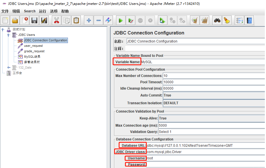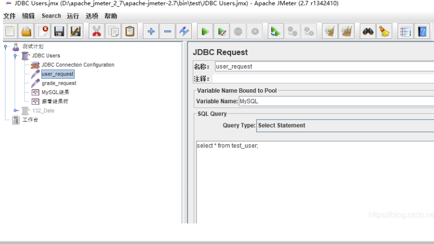 在我們的測試計(jì)劃中,會發(fā)送兩個JDBC請求。第一個是“user_request”,第二個是“grade_request”。