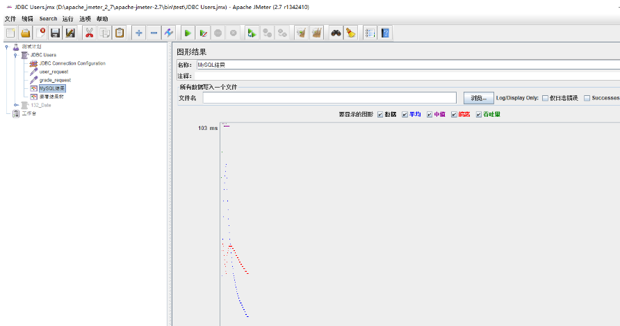 選中測試元件JDBC Users,并添加一個監(jiān)聽器--圖形結(jié)果(Graph Results)。