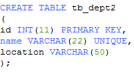 (1)定義方式一:在定義完列之后直接指定唯一約束