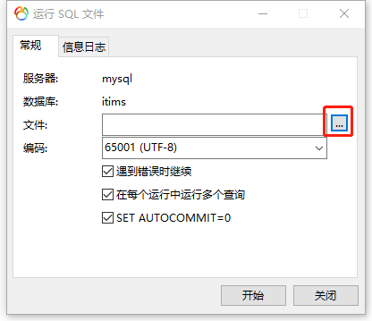 右側(cè)三個點處點擊瀏覽并選擇.sql文件