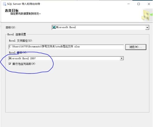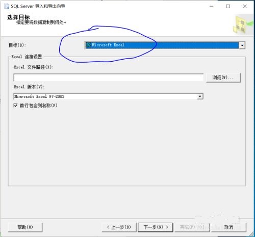 再選“下一步”(確保要導出的數(shù)據(jù)庫不會錯)。目標修改,選擇Microsoft Execel