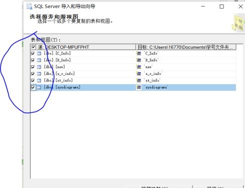 選擇下一步,勾選需導出的表后選擇“下一步“