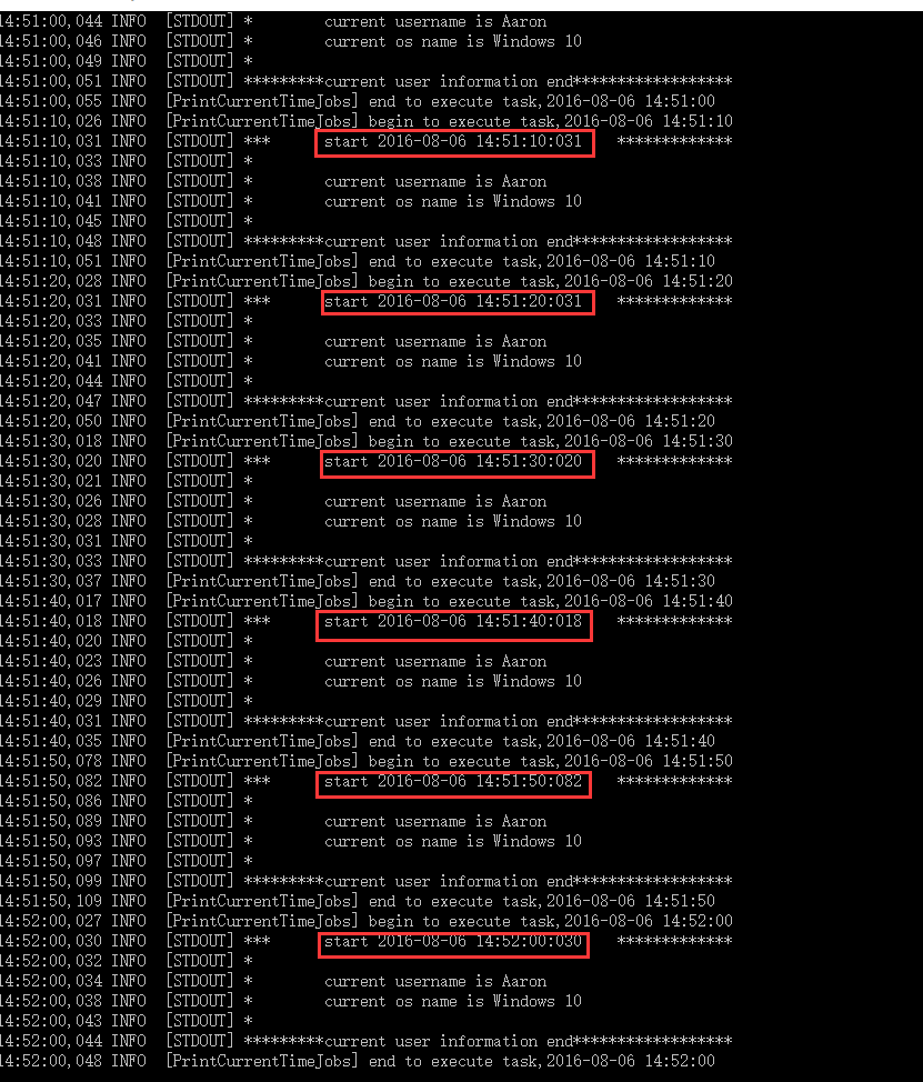 至此,我們可以清楚地看到,在分布式定時任務中(或者集群),同一時刻只會有一個定時任務運行。
