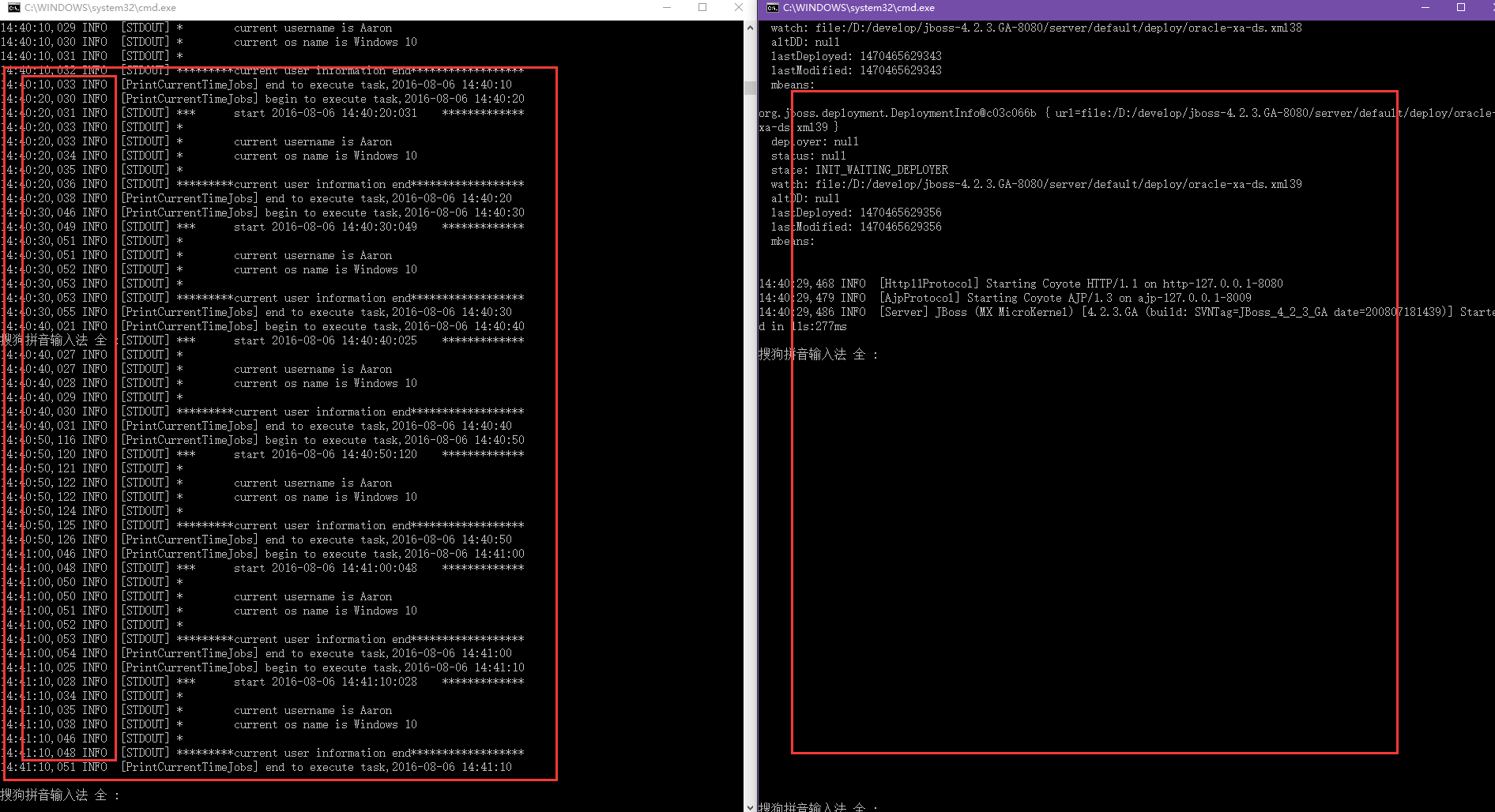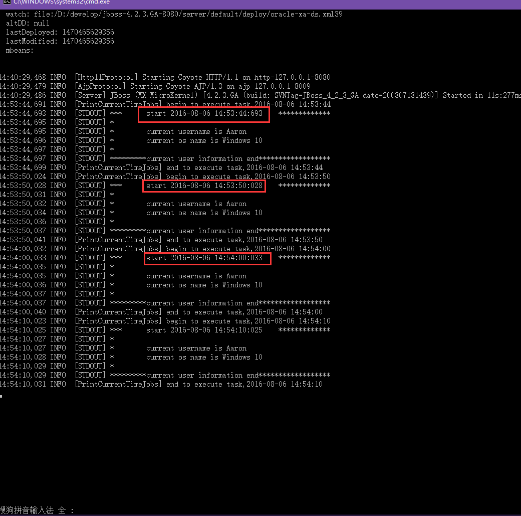 由于只有一臺電腦,所有開了8080和8888兩個端口來測試的,上面的定時任務設(shè)置了每10秒運行一次。