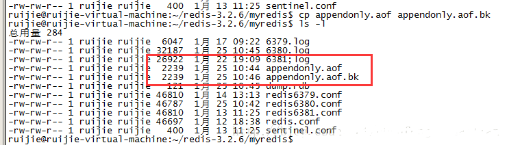 (2)寫入之后在文件夾中出現(xiàn)了AOF文件,再對這個文件進(jìn)行備份