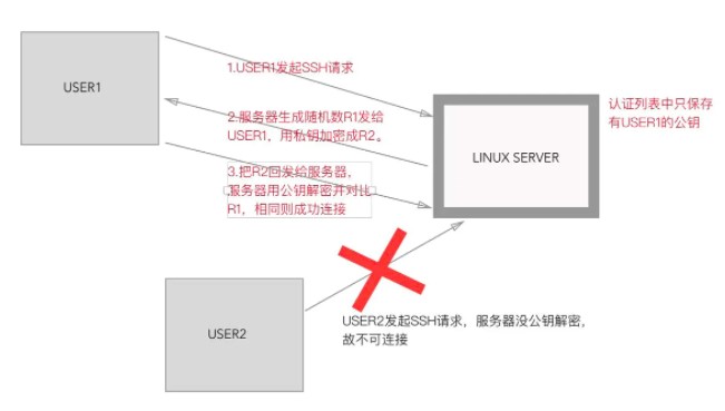如果我們事先在服務(wù)器中存儲了USER1的公鑰,則USER1發(fā)起SSH連接服務(wù)器的流程如下: