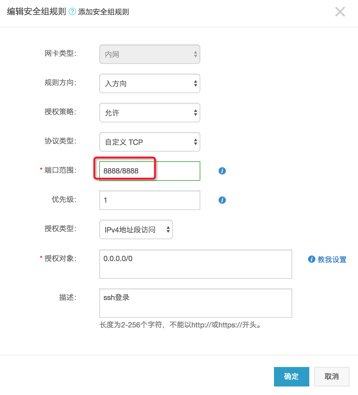 此時端口就已經被修改了,22已經連不上了。但是一般還需要修改防火墻,因為默認新端口是沒有被開放的,這里就不講怎么修改防火墻了。如果是阿里云服務器,可以到安全組配置里增加相應端口: