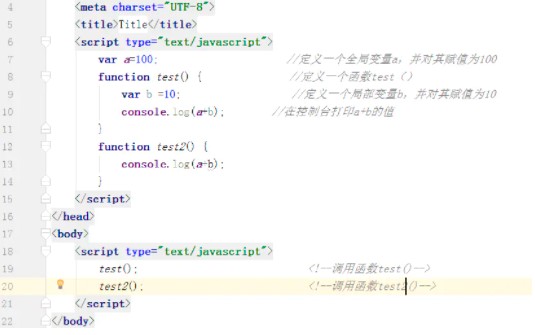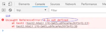 運(yùn)行這個(gè)兩個(gè)函數(shù)我們會(huì)發(fā)現(xiàn),test2()函數(shù)沒有輸出結(jié)果,因?yàn)樵趖est2()函數(shù)中,b沒有被定義,所以test2()函數(shù)報(bào)錯(cuò)了。在js中,如果代碼錯(cuò)誤又沒有拋異常的話,代碼是不會(huì)繼續(xù)往下執(zhí)行的,所以在test2()中a的值也不能正常輸出。
