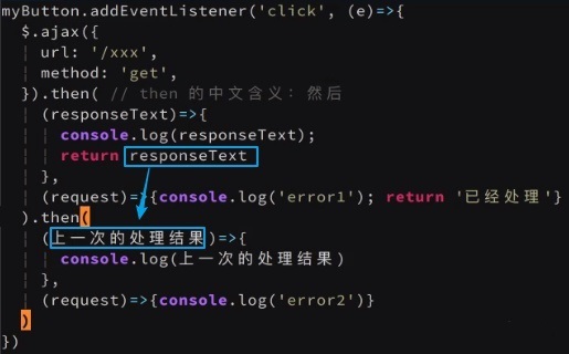 then可以鏈?zhǔn)秸{(diào)用,每次調(diào)用都以上次調(diào)用同一函數(shù)的返回值為參