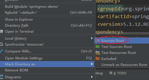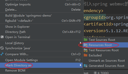 在main下面繼續(xù)新建resource目錄,選擇resource目錄,右鍵