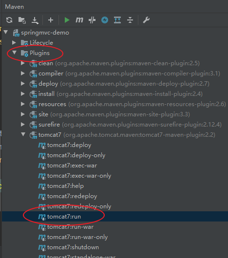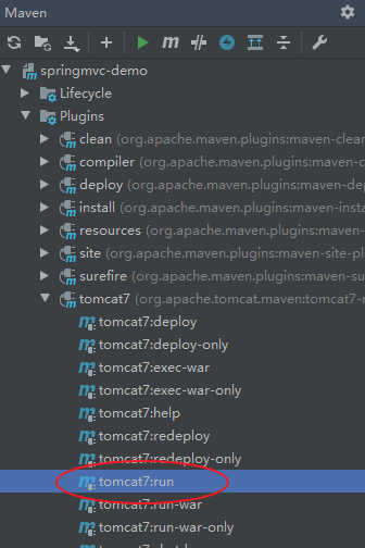 注意Tomcat7插件是用來運行項目的,右側(cè)運行: