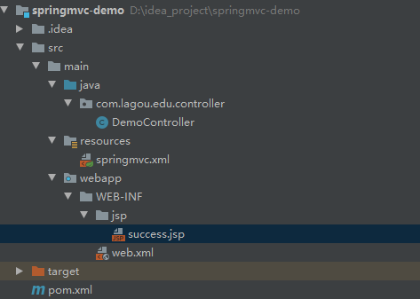 在java目錄下新建包com.lagou.edu.controller,下面新建DemoController: