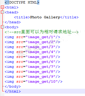 直接請求html文件,html里面的img標簽的src記錄了請求地址,發(fā)出請求,后臺控制,將圖片的內容輸出到瀏覽器上