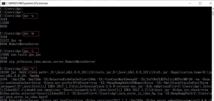 功能介紹:列出正在運(yùn)行的虛擬機(jī)進(jìn)程,并顯示虛擬機(jī)執(zhí)行主類(Main Class,main()方法所在的類)名稱以及這些進(jìn)程的本地虛擬機(jī)唯一ID(LVMID,Local Virtual Machine Idertifier)。