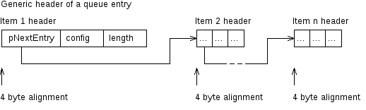 所有隊列條目都以一個公共頭部分開始,包含一個指向下一個條目的指針、一個配置字段和條目的長度(以字節(jié)為單位)。