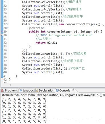 下面方法的說明:binarySearch:使用二分搜素法搜素指定列表,以獲得指定對象;max:根據(jù)元素的自然順序或指定比較器產(chǎn)生的順序,返回給定collection的最大元素;min:根據(jù)元素的自然順序或指定比較器產(chǎn)生的順序,返回給定 collection 的 小元素;fill:使用指定元素替換指定列表中的所有元素;frequency:返回指定collection中等于指定對象的元素?cái)?shù);indexOfSubList:返回指定源列表中最后一次出現(xiàn)或最后一次出現(xiàn)指定目標(biāo)列表的起始位置;如果沒有出現(xiàn)這樣的列表,則返回-1;replaceAll:使用另一個(gè)值替換列表中出現(xiàn)的所有某一指定值;見代碼圖2: