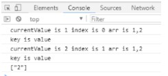 console.log("currentValue is " + currentValue + " index is " + index + " arr is " + arr);
