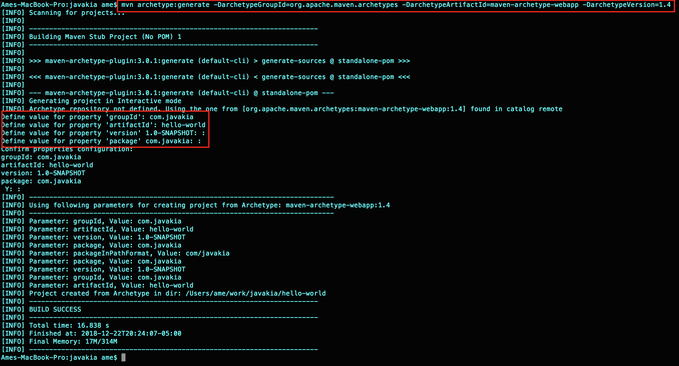創(chuàng)建一個(gè)非常簡單的Hello WorldWeb 應(yīng)用程序來測(cè)試我們的安裝。從命令行執(zhí)行下面的 maven 命令。(它會(huì)提示你輸入你正在創(chuàng)建的項(xiàng)目的信息,Group Id,Artifact Id,版本...等。你可以只指定 Group Id 和 Artifact Id,maven 將采用默認(rèn)值其余的……)