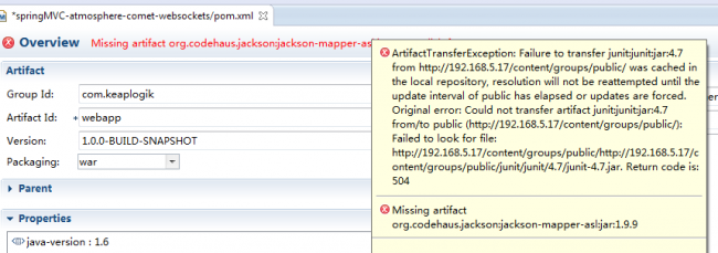 比如:Missing artifact org.codehaus.jackson:jackson-mapper-asl:jar:1.9.9