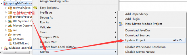 1.項(xiàng)目右鍵單擊=》Maven=》Update Project
