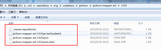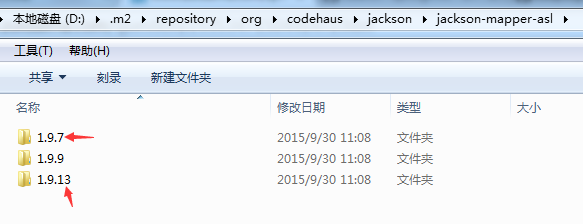 4.查找到maven本地庫(kù)中確實(shí)有org.codehaus.jackson:jackson-mapper-asl:jar:1.9.9的文件夾,應(yīng)該是沒(méi)下載成功導(dǎo)致的,刪除該文件夾再執(zhí)行上面的2中方法就ok了。