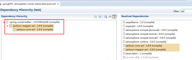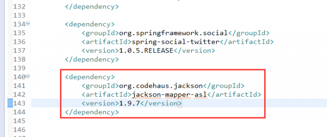 8.這種情況下,只要在pom.xml強(qiáng)行依賴org.codehaus.jackson:jackson-mapper-asl:jar:1.9.7或org.codehaus.jackson:jackson-mapper-asl:jar:1.9.13即可
