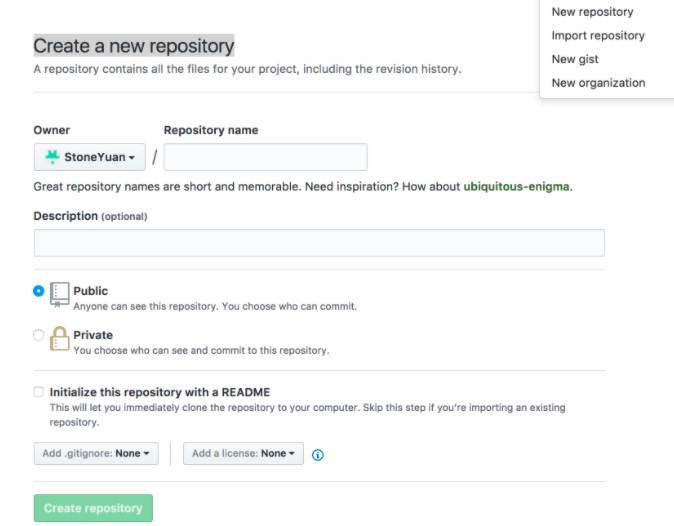 點(diǎn)擊New repository,填好所有信息后點(diǎn)擊create repository就會(huì)進(jìn)入到類似下面的一個(gè)頁(yè)面,拿到創(chuàng)建的倉(cāng)庫(kù)的https地址