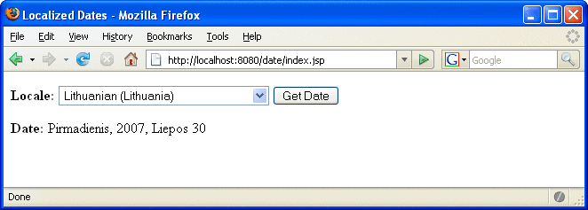 圖中的網(wǎng)頁是一個表單,允許您選擇語言環(huán)境并以適合該語言環(huán)境的方式顯示日期。