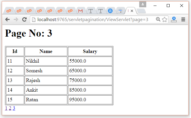 為了將大量記錄分成多個部分,我們使用分頁。它允許用戶只顯示部分記錄。在單個頁面中加載所有記錄可能需要時間,因此始終建議創(chuàng)建分頁。在servlet中,我們可以很容易地開發(fā)分頁示例。