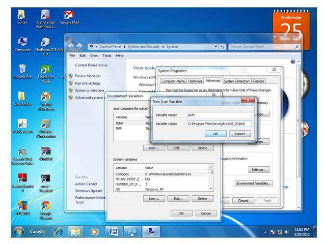 轉(zhuǎn)到 MyComputer 屬性 -> 高級選項卡 -> 環(huán)境變量 -> 用戶變量的新選項卡 -> 在變量名稱中寫入路徑 -> 在變量值中寫入 bin 文件夾的路徑 -> ok -> ok -> ok