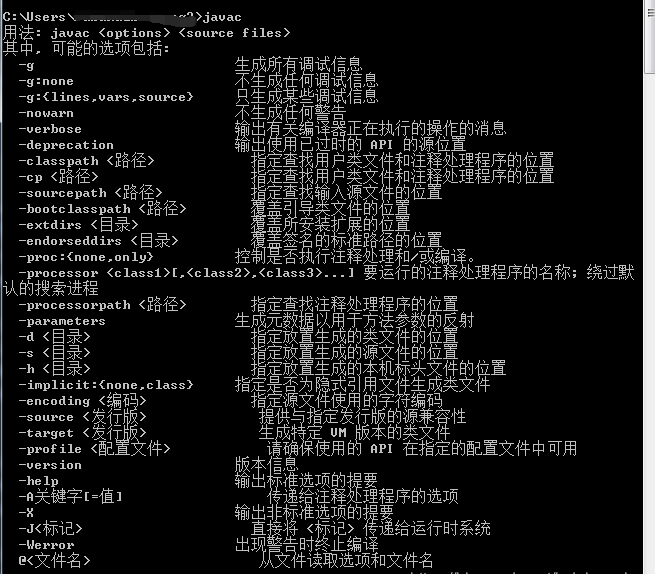 如果記不住命令可以執(zhí)行:javac 會(huì)顯示 java 命令