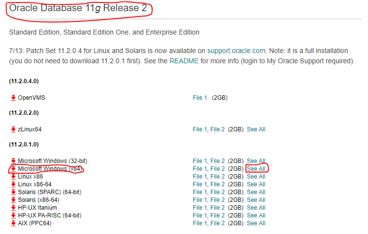 數(shù)據(jù)庫11g企業(yè)版/標(biāo)準(zhǔn)版下載,如下圖所示: