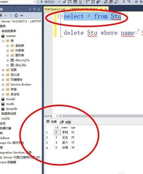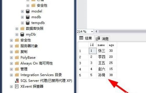 首先,我們利用Select查詢一下表中的所有數據,顯示在這里我們可以看到。