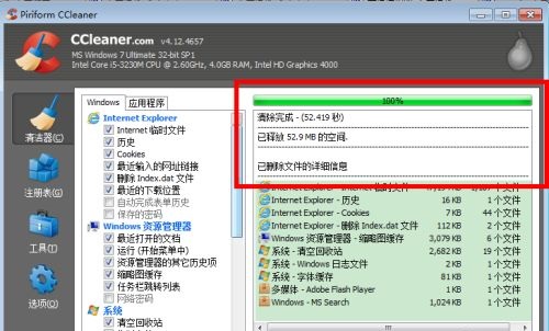 上面的進(jìn)度條顯示100%后則表示清理完畢。