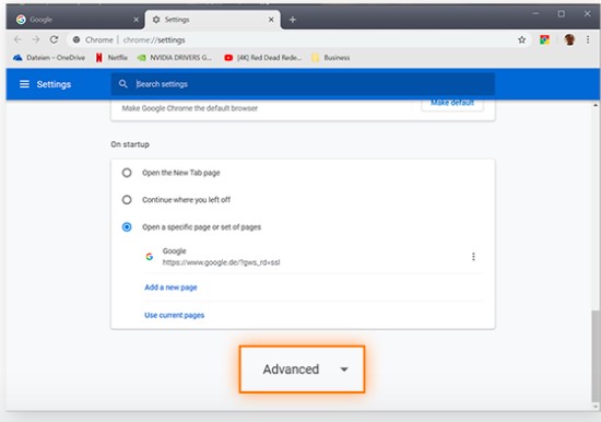 2.向下滾動(dòng)到頁(yè)面的最后。單擊頁(yè)面底部的小高級(jí)鏈接。