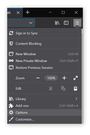 1.打開(kāi)火狐。單擊屏幕右上角的三行。然后點(diǎn)擊選項(xiàng):